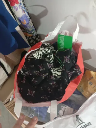Prendas de vestir en buen estado para mujer, tallas XS y S. - Incluye 10 piezas de ropa. - Variedad de estilos: camisetas, camisa, vestido, chaleco denim. - Colores: azul, blanco, entre otros.