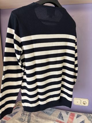 Jersey de Pull&Bear con un diseño de rayas clásico y atemporal. Es una prenda cómoda y versátil. - Diseño de rayas horizontales. - Tejido de punto con textura. - Cuello redondo.