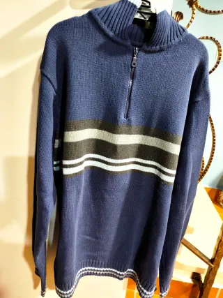 Jersey de punto para hombre con un diseño de rayas. - Cuello alto con cremallera. - Puños y bajo de canalé. - Rayas horizontales en pecho y bajo.