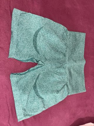 Mallas cortas deportivas en un bonito tono verde. Son cómodas y versátiles. - Tejido elástico y suave. - Cintura alta para mayor sujeción. - Diseño sin costuras.