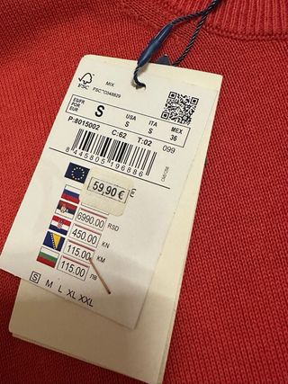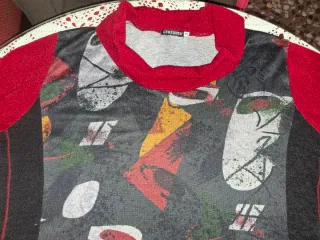 Jersey de punto con diseño tricolor. - Tejido principal en color rojo. - Detalles en azul marino y blanco. - Cuello redondo. - Puños y bajo acanalados. -Queda solo tallas S,XL