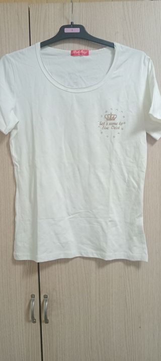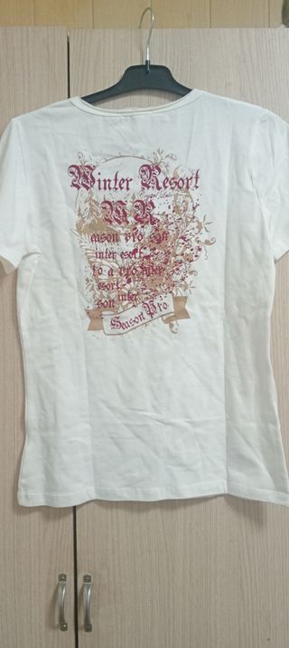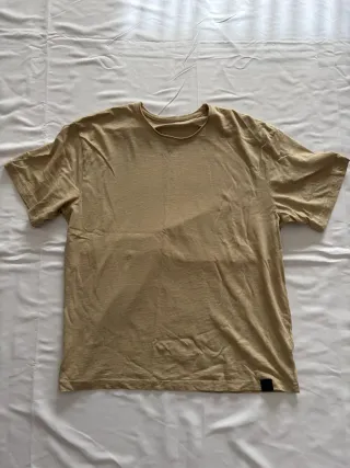 Camiseta de manga corta en color beige. Un básico versátil para cualquier ocasión. Largo 66 cm Pecho 44 cm - Cuello redondo. - Tejido suave al tacto. - Etiqueta discreta en la parte inferior.