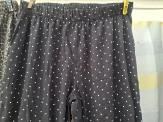 Conjunto de dos mallas cómodas y versátiles.Nuevas, nunca se han usado, aunque no tiene etiquetas - Una malla con estampado de leopardo. - Otra malla con estampado de lunares blancos sobre fondo negro. - Medidas: Cintura 70 cm que pueden llegar, perfectamente, a 90 ya que tienen goma en la cintura bastante fruncida; Largo 94 cm