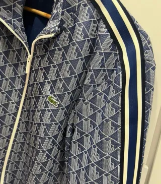 Conjunto de chándal original de Lacoste con un diseño geométrico en tonos azules y blancos. Incluye chaqueta y pantalón. - Diseño con patrón geométrico. - Detalles de rayas laterales en azul marino y blanco. - Logo de Lacoste visible en ambas prendas. 🟩Totalmente original en su momento pague 400€ por el conjunto lo usé unas dos veces ya no lo uso precio a mitad de me precio solo me estás pagando la chaqueta 190€ no negociable.