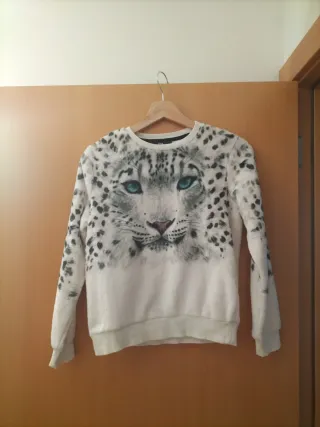 Sudadera con un llamativo estampado de leopardo. - Diseño frontal de cabeza de leopardo. - Mangas y parte trasera con manchas de leopardo. - Cuello redondo.