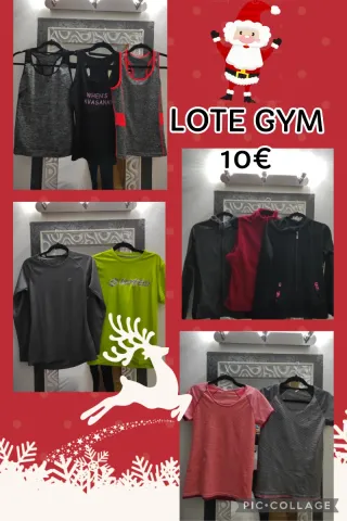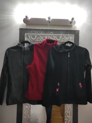 Conjunto de prendas deportivas para entrenar. - Tres camisetas de manga corta. - Tres camisetas sin mangas. - Una camiseta de manga larga. - Dos chaquetas con cremallera. - Un chaleco polar.