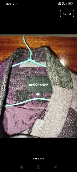 Abrigo talla 46 (consultar medidas), marca Junco y Arena. Mide 55cm de sisa y 97cm de largo. Con bolsillos y forro interior. 46% lana