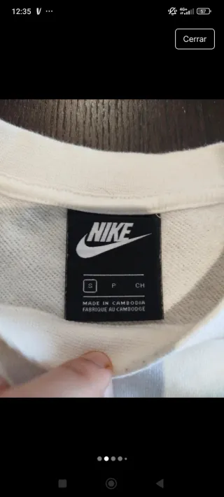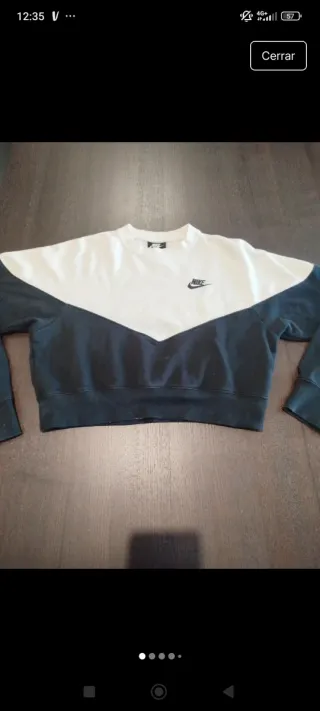 Sudadera crop talla S marca Nike. Mide 52cm de sisa y 45cm de largo. Tiene algunas manchitas de lejía ( ver 2 últimas fotos). Pasar a recoger o envío wallapop