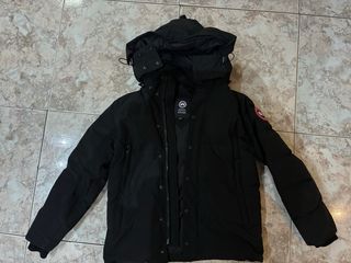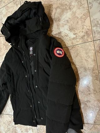 Parka de la marca Canada Goose en color negro. Diseño moderno y funcional. - Capucha ajustable. - Cierre frontal con cremallera y botones. - Bolsillos laterales con cremallera. - Puños elásticos. chaqueta casi nueva en perfecto estado y con su plumaje venta en persona o envío