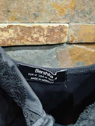 Body de Bershka en color negro. - Diseño con tirantes finos. - Detalle de encaje en el escote. - Corte ajustado.
