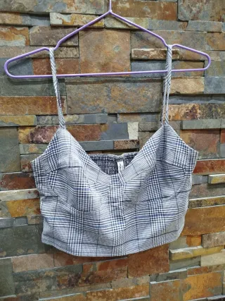 Top corto con estampado de cuadros. - Tirantes finos. - Escote pronunciado. - Detalle elástico en la espalda.