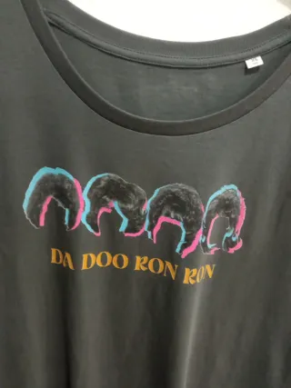Camiseta de manga corta para mujer - Algodón orgánico - Tejido preencogido - Estampado Da Doo Ron Ron (The Crystals) en la parte delantera (dtg) - Cuello redondo. - Corte suelto medium fit - Alto: 62cm - Ancho: 42cm
