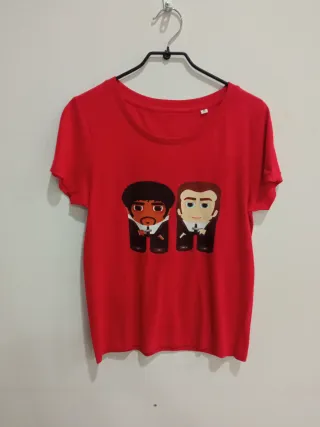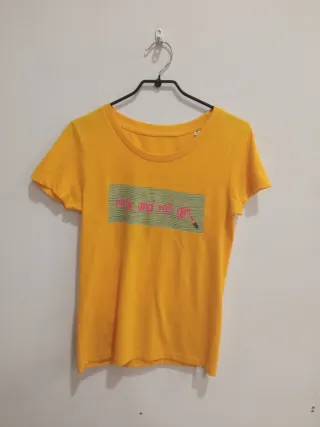 Camiseta de manga corta para mujer - Algodón orgánico - Tejido preencogido - Estampado en la parte delantera (dtf) - Cuello redondo. - Corte suelto medium fit - Alto: 62cm - Ancho: 42cm.