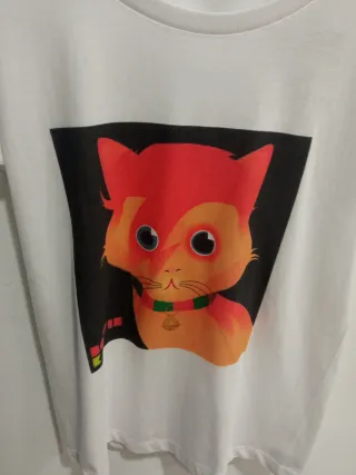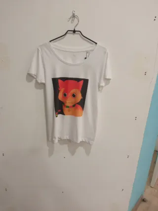 Camiseta de manga corta para mujer - Algodón orgánico - Tejido preencogido - Estampado Frida Kat en la parte delantera (dtf) - Cuello redondo. - Corte suelto medium fit - Alto: 64cm - Ancho: 45cm