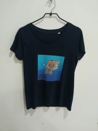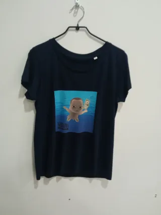 Camiseta de manga corta para mujer - Algodón orgánico - Tejido preencogido - Estampado Nevermind en la parte delantera (dtg) - Cuello redondo. - Corte suelto medium fit - Alto: 64cm - Ancho: 45cm
