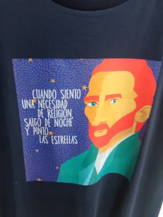 Camiseta de manga corta para mujer - Algodón orgánico - Tejido preencogido - Estampado Van Gogh en la parte delantera (dtf) - Cuello redondo. - Corte suelto medium fit - Alto: 64cm - Ancho: 45cm