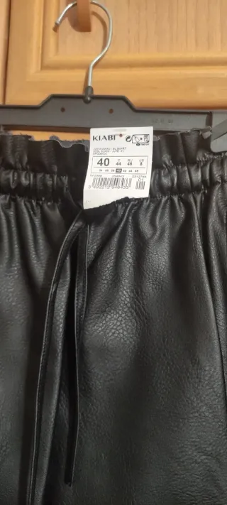 Minifalda de polipiel con cintura elástica y cordón. - Largo 45 cm - Diseño moderno y versátil. - Material polipiel. - Cintura con goma elástica y con cordón ajustable. - tiene una pequeña rozadura en la cintura, que ya estaba cuando la compré pero apenas se ve