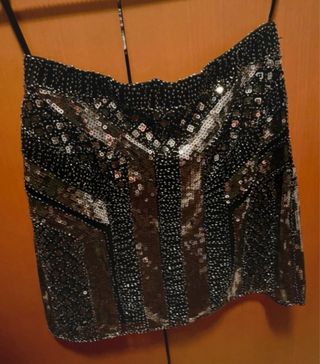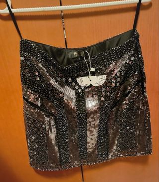 Falda corta con un diseño llamativo de lentejuelas. - Lentejuelas brillantes - Diseño con detalles geométricos. - Tejido elástico
