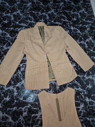 Traje mujer chaqueta y vestido beige Talla M