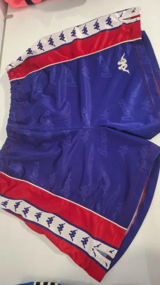 Pantalón corto del FC Barcelona, marca Nike. - 2001-2002 - Escudo del club bordado en la pierna izquierda. - Ribete lateral en contraste.
