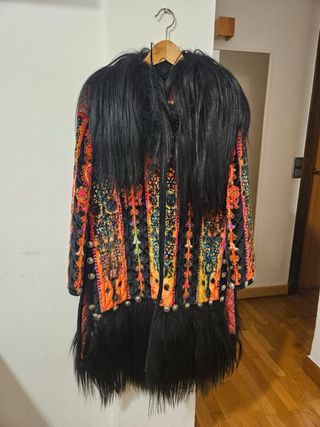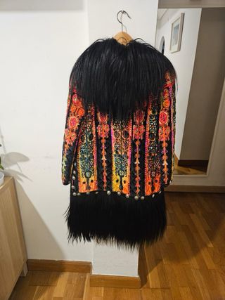 Abrigo llamativo y original de Tete Odette. - Diseño acolchado con vibrantes detalles multicolores. - Adornado con detalles plateados. - Incorpora detalles de pelo sintético en cuello y bajo.
