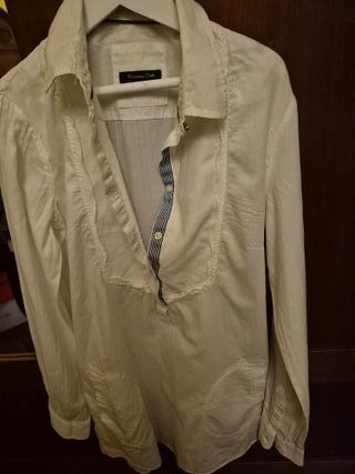 Camisa de manga larga de la marca Massimo Dutti. - Diseño con cuello camisero. - Cierre parcial de botones. - Detalle de franja azul en la tapeta. - Puños abotonados.