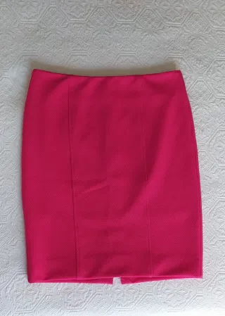 Falda hasta la rodilla color rosa- Fucsia, talla S, nueva.