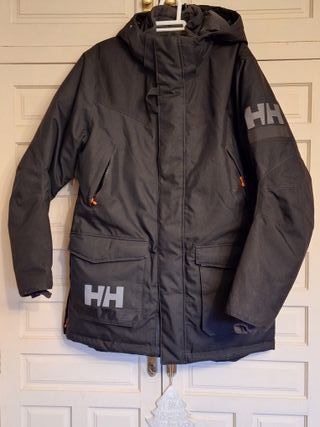 Muy poco usada. Tiene un parche de tela en una manga y en un bolsillo pero no por tapar un roto, fue exigencia empresarial. Modelo similar al "artico" e iguales caracteristicas. Pensada y diseñada contra el frio intenso (BIFROST).Helly Tech Profesional (R); impermeable, transpirable, aislante, cortavientos, diseño totalmente sellado, doble solapa, tecnologia H2 FLOW. Multibolsillos; espacio especifico para el movil con tecnologia LIFE POCKET que evita que el frio agote la bateria. Acceso a los bolsillosinteriores sin necesidad de abrir la chaqueta ni perder calor.Totalmente regulable. Peso 1,900 kilos.
