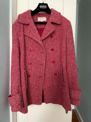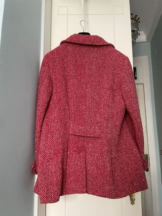 Abrigo corto con un diseño jaspeado en color rojo. Ideal para añadir un toque de estilo a tu vestuario. - Diseño de doble botonadura. - Cuello solapa. 90% lana. Medidas: de axila a axila 52 cm. largo 74 cm