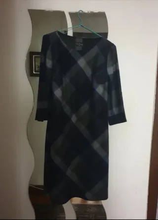 Vestido de Roberto Verino con un diseño de cuadros. - Diseño de cuadros en tonos negro y gris. - Manga larga.