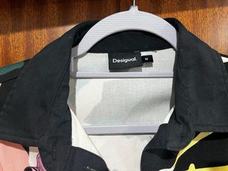 Vestido de la marca Desigual con un vibrante estampado. - Diseño con flores y formas abstractas. - Cinturón ajustable con hebillas. - Cuello camisero y botones frontales. - Mangas cortas.