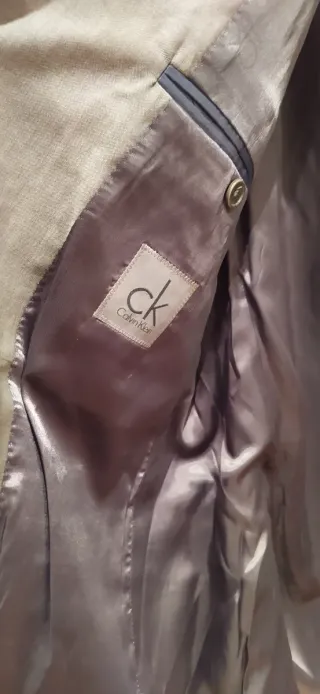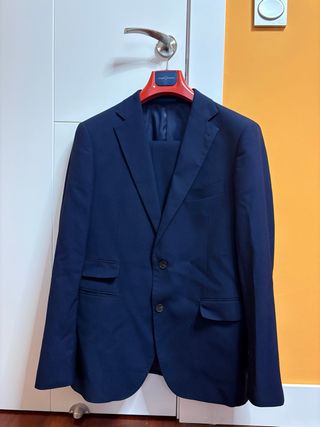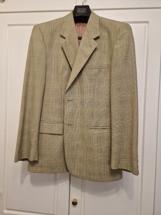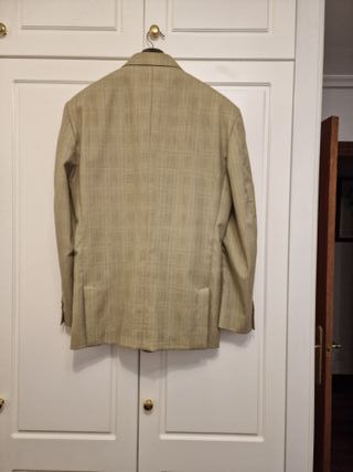 Traje de vestir para hombre. - Chaqueta con solapa de muesca. (Talla M) - Cierre de dos botones. - Bolsillos con solapa. - Pantalón de dos cierres. (Talla 44)