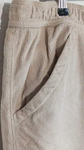 Pantalones tipo jogger de pana en color beige. - Cintura elástica. - Bolsillos laterales. Medidas: Cintura - 41 cm. Largo - 92 cm.