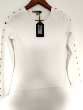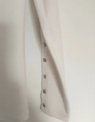 Top de manga larga con un diseño moderno y detalles únicos. - Mangas adornadas con botones metálicos. - Cuello redondo clásico.
