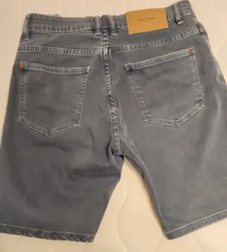 Pantalón corto de la marca Zara en color azul. - Diseño clásico de cinco bolsillos. - Cierre de cremallera y botón. - Tejido de algodón.