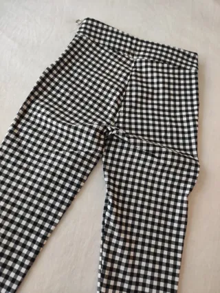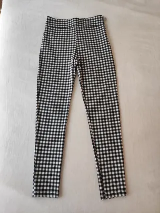 Leggings con estampado de cuadros vichy. Tejido elástico. Tiro alto. Cierre lateral con cremallera. Prácticamente nuevos.