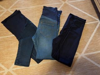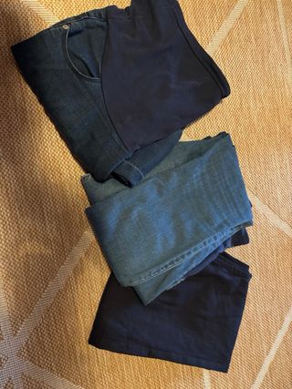 Tres pares de pantalones premamá. - Tejido vaquero. - Cintura elástica. - Diseño cómodo.