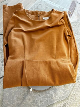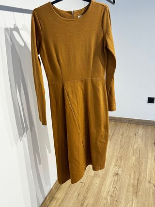 Vestido de manga larga en color marrón. Diseño elegante y versátil. - Corte entallado. - Tejido suave al tacto. - Cremallera oculta en la espalda.