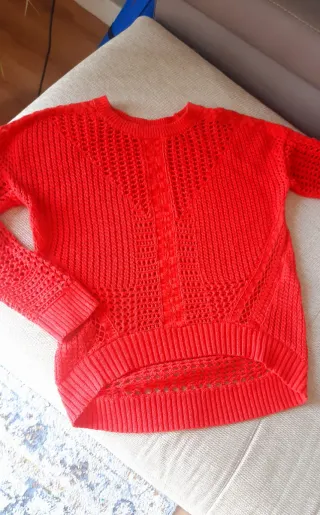 Pack de 5 prendas de ropa varias marcas: - Rebeca punto beige claro. - Rebeca punto negra - Blusa azul marino. - Sudadera turquesa. - 3 foulares