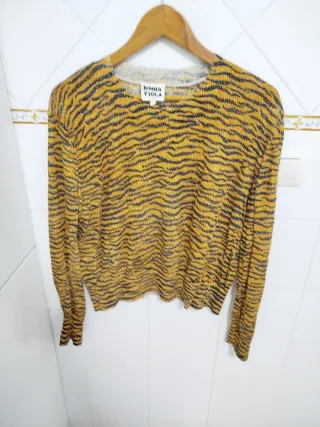 Jersey de manga larga con un llamativo estampado. - Diseño de cebra. - Tejido ligero y con brillo.
