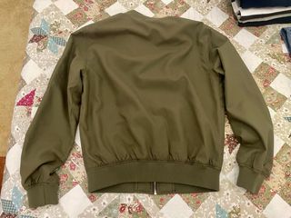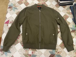 Chaqueta estilo bomber en color verde militar. Diseño moderno y versátil. - Cierre de cremallera frontal. - Bolsillos laterales con botón. - Bolsillo adicional con cremallera en la manga. - Puños y bajo elásticos.
