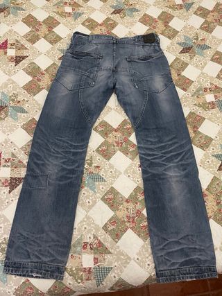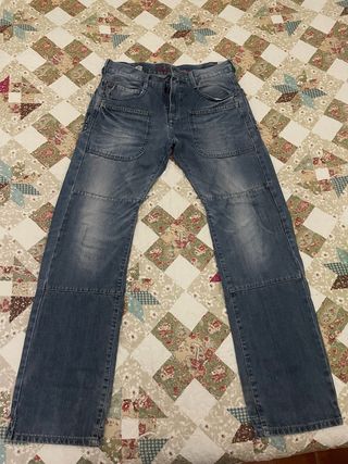Pantalón vaquero de corte ancho,usado un par d veces - Diseño con bolsillos frontales. - Costuras reforzadas en las rodillas. - Estilo desgastado.