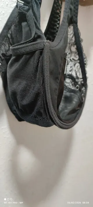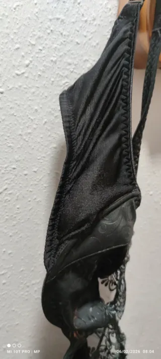 Sujetador de color negro con detalles de encaje. - Copas con relleno. - Tirantes ajustables. - Cierre trasero.