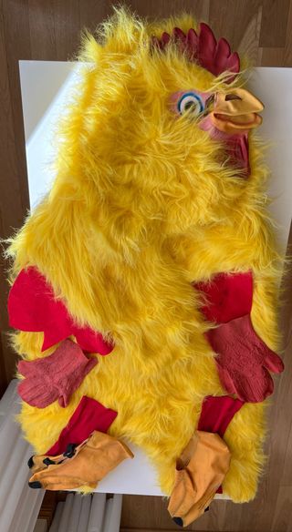 Disfraz completo de pollo para adulto. Ideal para fiestas temáticas o eventos, carnaval... - Diseño de peluche amarillo. - Incluye cabeza, cuerpo y patas. - Guantes rojos. - Talla única. Presenta alguna suciedad leve