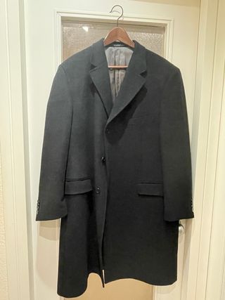 Abrigo de paño negro Talla 54. Lana y cashmere
