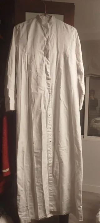 Conjunto de túnica y capa de color blanco. Sin botones, ni escudo - Túnica: Largo 1.37 cm. - Capa: Largo 1.50 cm. Sirve para cualquier hermandad con túnica blanca HERMANDAD DE LA ESTRELLA SEVILLA