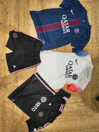Conjunto de ropa deportiva oficial del Paris Saint-Germain, Original - 1 camiseta PSG O.Dembele talla S - 1 camiseta PSG Qatar Airwais talla S - 1 camiseta PSG Messi talla M. - 1 pantalón corto PSG Messi talla M.