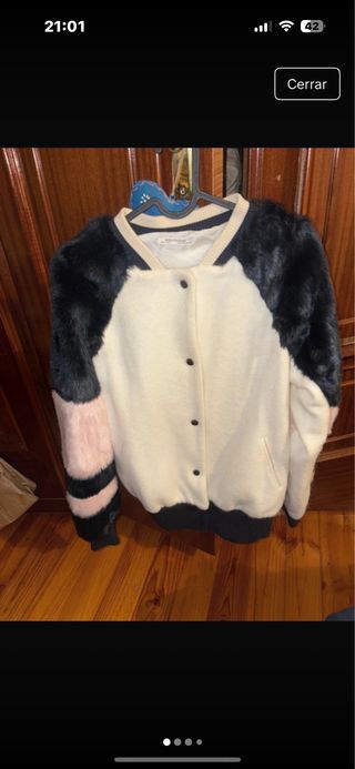 Cazadora corta con forro de borreguito. - Diseño moderno. - Cierre de cremallera. - Puños y cuello con detalle de borreguito. Usada.solo.un par de veces.zara.talla s