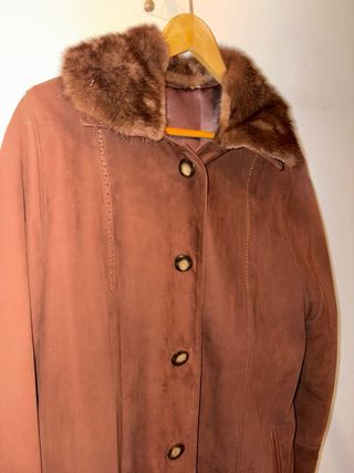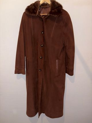 Abrigo Piel Real Vintage Marrón con Cuello Peludo