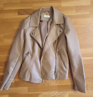 Cazadora de polipiel con un diseño moderno. Modelo estilo biker en un color marrón claro muy versátil que combina con todo.